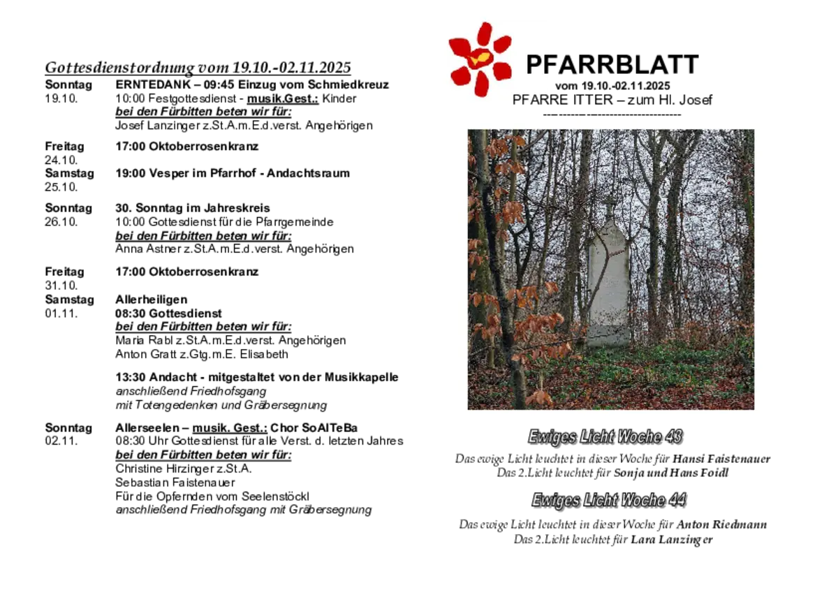Pfarrblatt vom 19.10.-02.11.2025